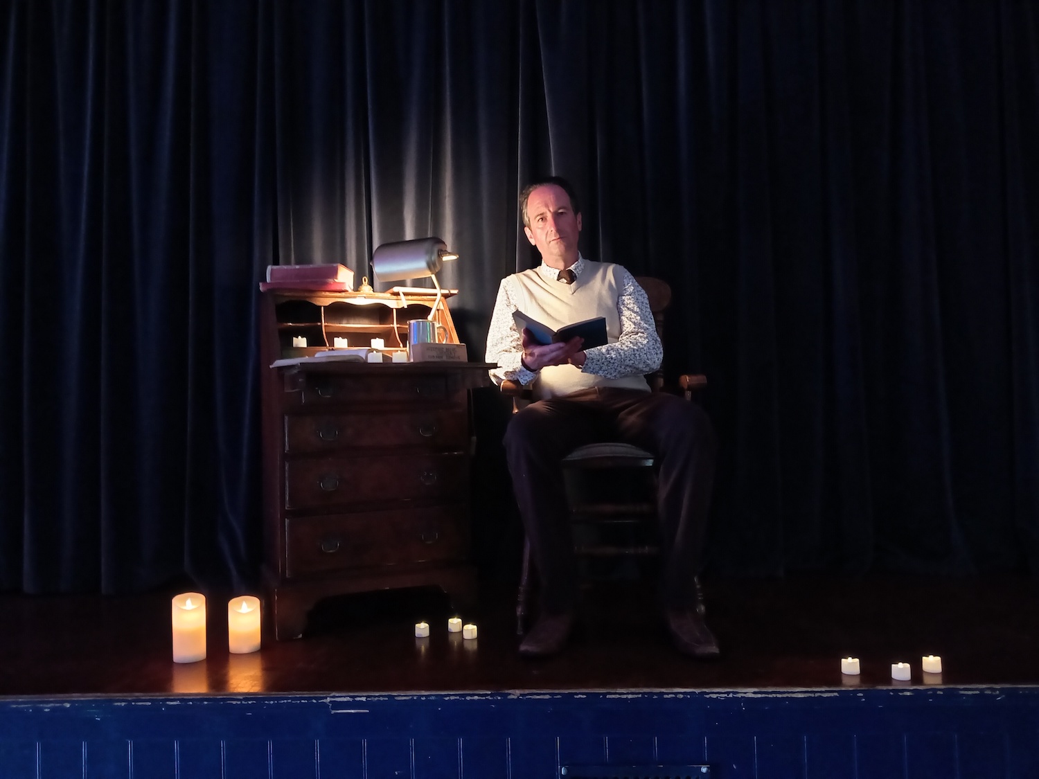Weeping Bank bridges the gap between Audible and Theatre. Our aim is to establish a new hinterland for audiences to explore. Original stories, told with minimal soundscape and lighting, returning audiences to the very essence of storytelling. This is more a ‘Man in Black’ audio experience than it is a ‘Woman in Black’ theatrical performance. The Librarian is not performing the story, he is reading it and experiencing it with you. Sitting in the dark in a theatre, this becomes a uniquely close experience. We are often told by audience members that they felt as though The Librarian was reading just to them. Without the comfort blanket of knowing this is just an actor performing a part, or a horror show enhanced with clever special effects.