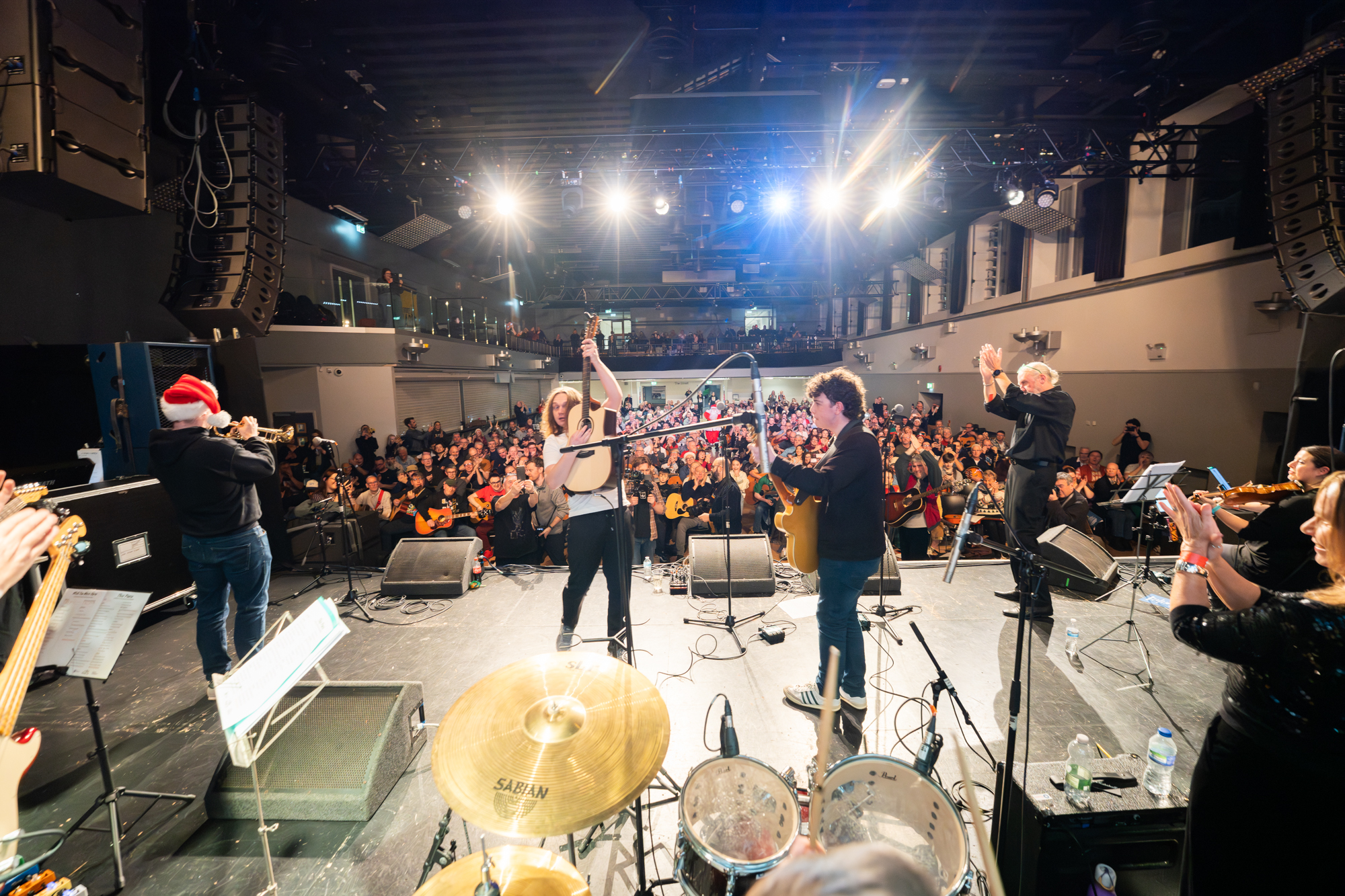 The sound of 603 guitars rang out across Mountford Hall last Thursday night (11 December) as Liverpool’s Big Guitar-In returned in spectacular, record-breaking fashion. Beating last year’s total by a single guitarist, the fifth edition of the fundraiser delivered an unforgettable evening of music, unity and community spirit — all in support of The Florrie.