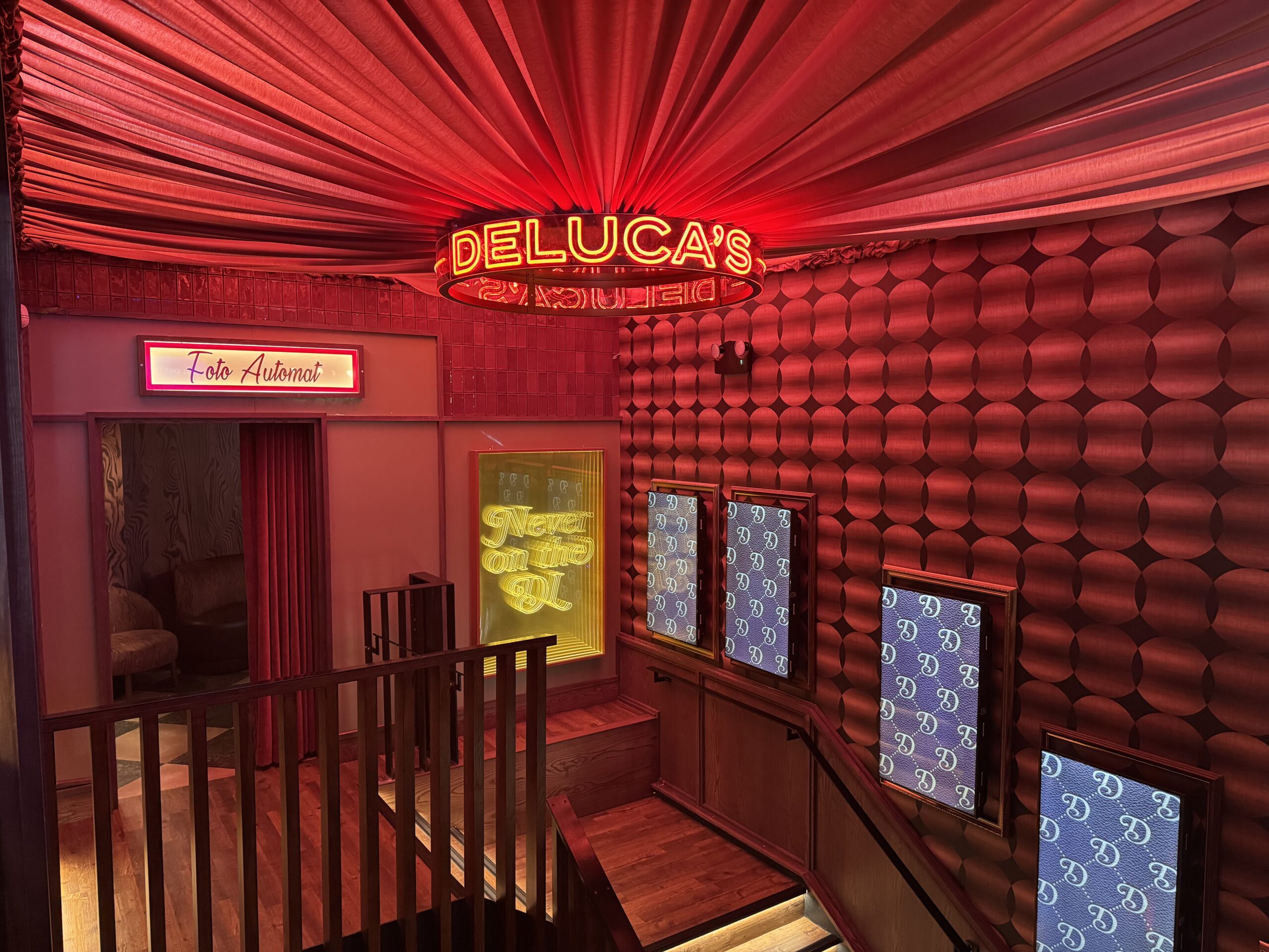 Stretching beneath the whole DeLuca’s complex is One Below, a neon-lit subterranean nightclub designed for after-dark impact.